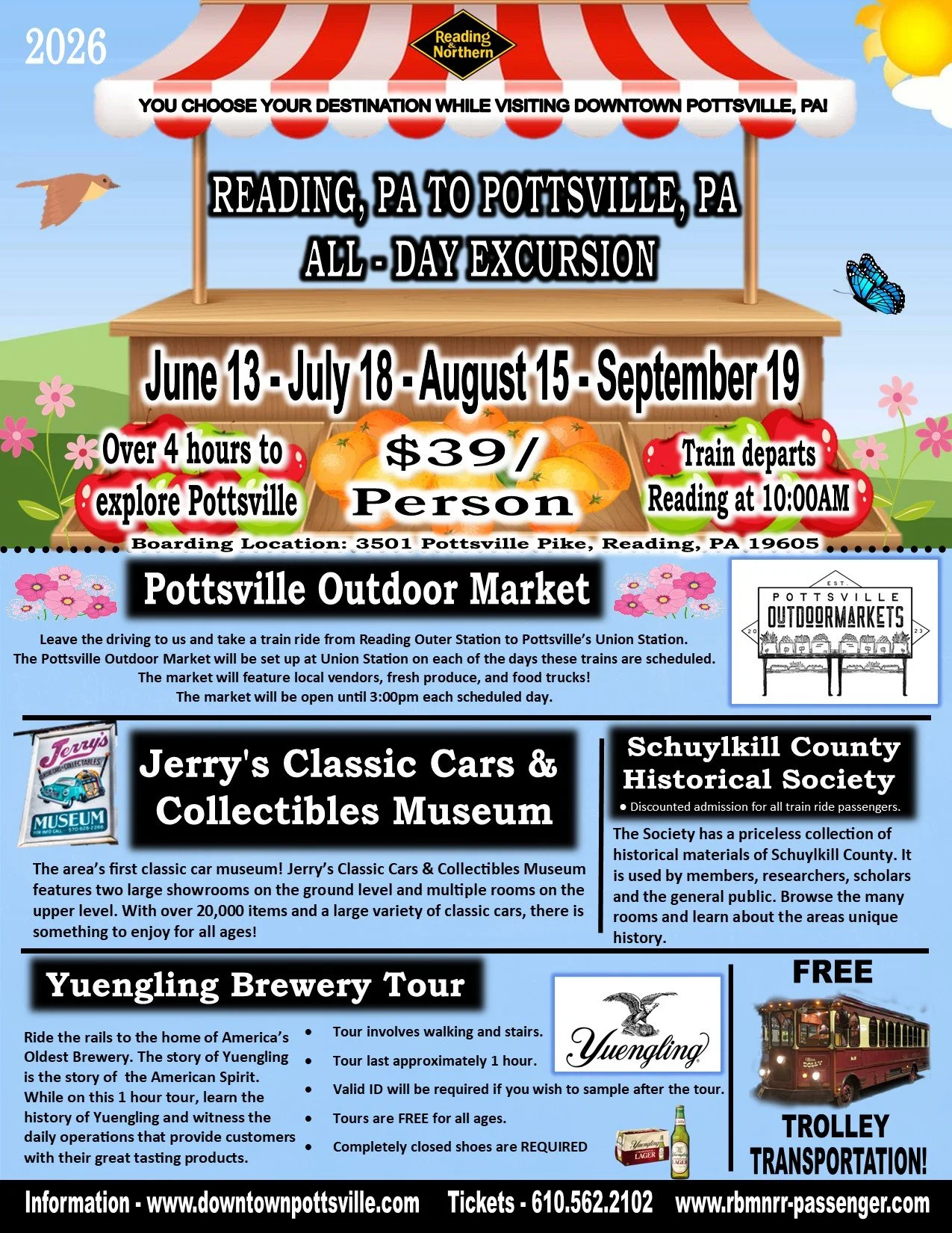 Leave the driving to us and take a train ride from Reading Outer Station to Pottsville’s Union Station!